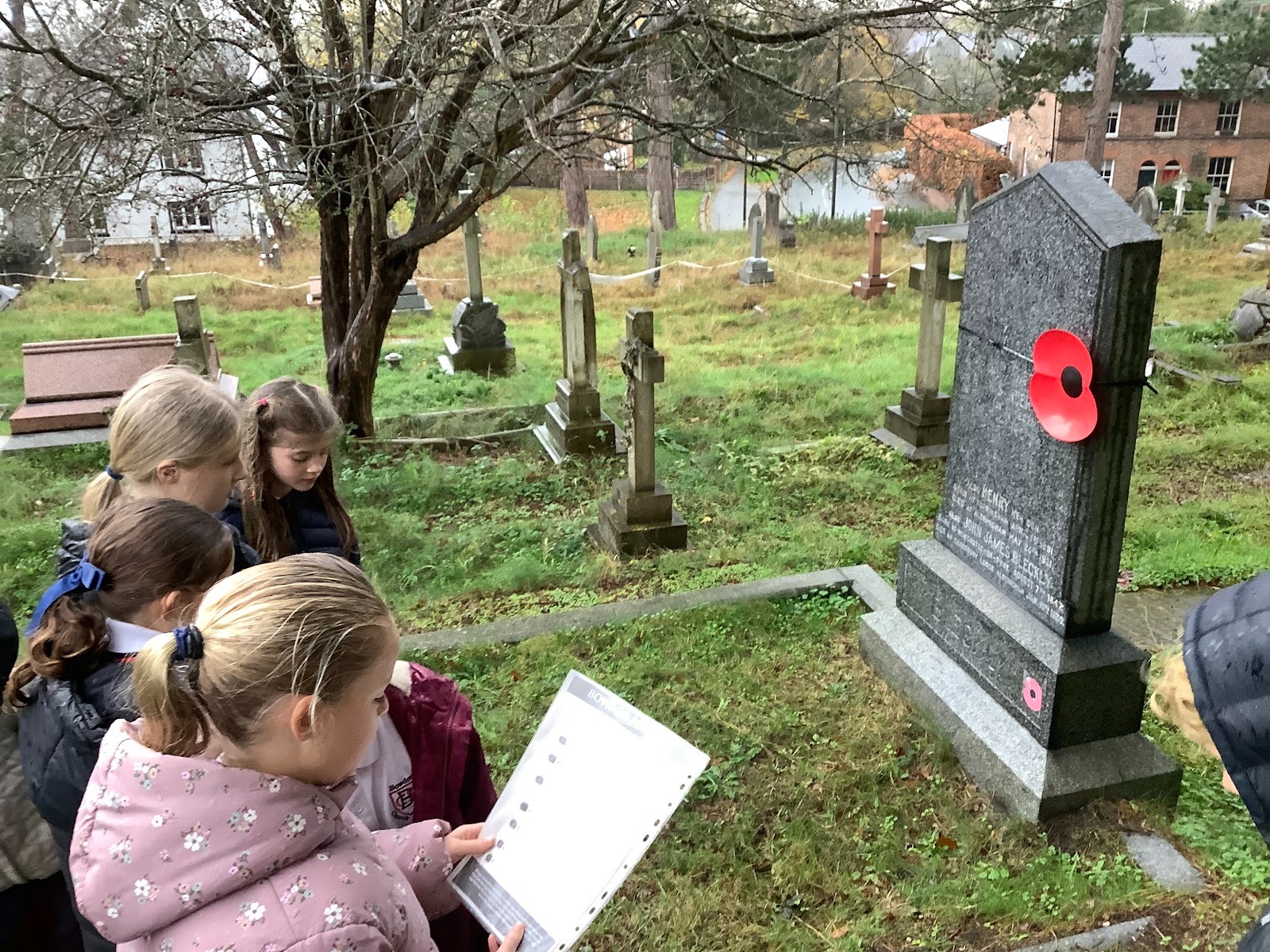 Y6 children walked to St Mary’s Church to visit the Remembrance Graveyard trail. This highlights seven graves / memorial stones of local men who died during WW1. The children conducted themselves thoughtfully and respectfully throughout.